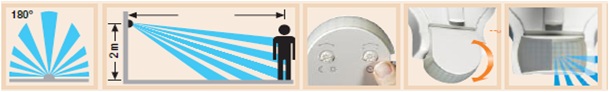 Зона охвата регулируется согласно местным условиям путем горизонтального или вертикального поворота линз или посредством имеющихся в поворота линз или посредством имеющихся в комплекте заслонок.